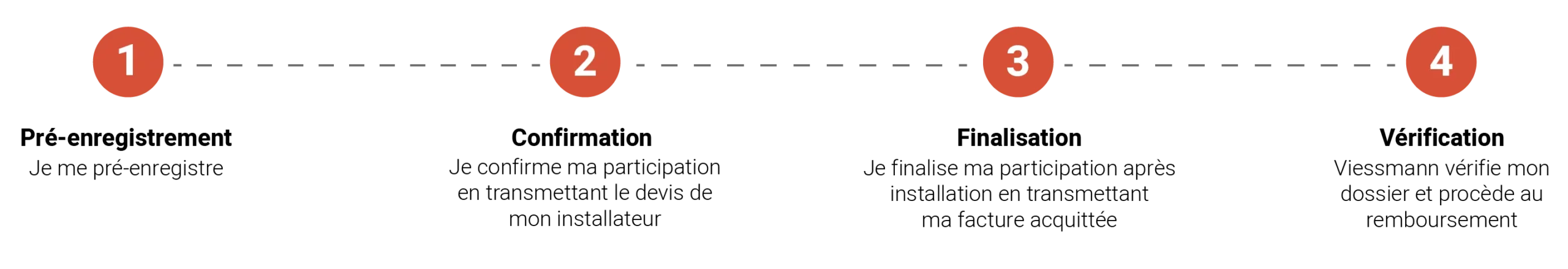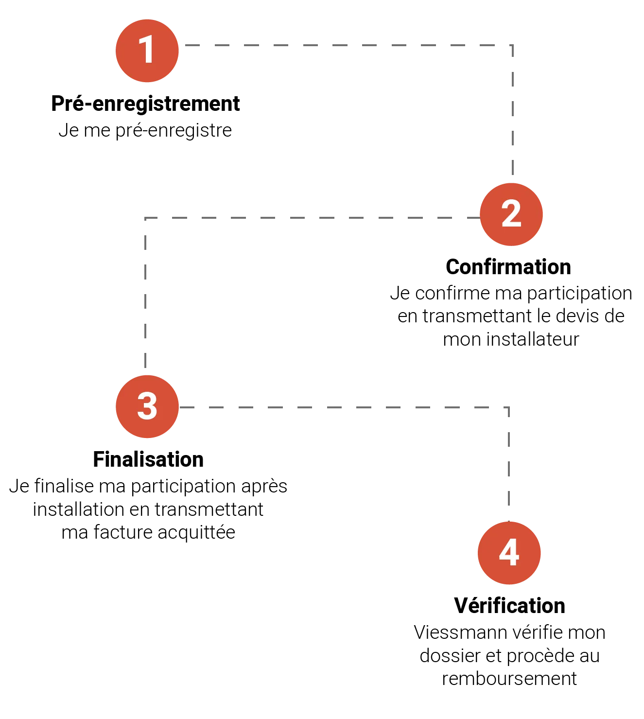 Accédez à une sélection d’offres de remboursement dédiées aux installations Viessmann. Choisissez l’équipement éligible, faites-le installer par un professionnel et profitez d’un remboursement pour réduire votre investissement en toute simplicité.
